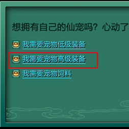 找到仙宠师,购买宠物装备。