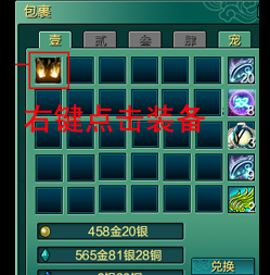 打开包裹栏,右键点击要装备的物品,即可给宠物穿上装备。